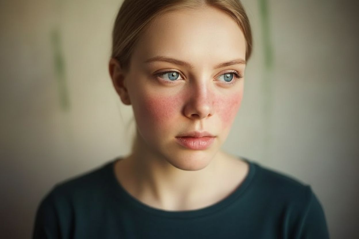 Волчанка или системная красная волчанка (СКВ) — хроническое заболевание соединительной ткани, которое обуславливается нарушениями иммунных механизмов организма. Проявляется как высыпания на коже красного цвета, которые могут находиться на нескольких участках тела. Самая распространённая локация заболевания — щеки и переносица (имеющая форму бабочки). За это болезнь и получила своё название, так как напоминает укус волка.
