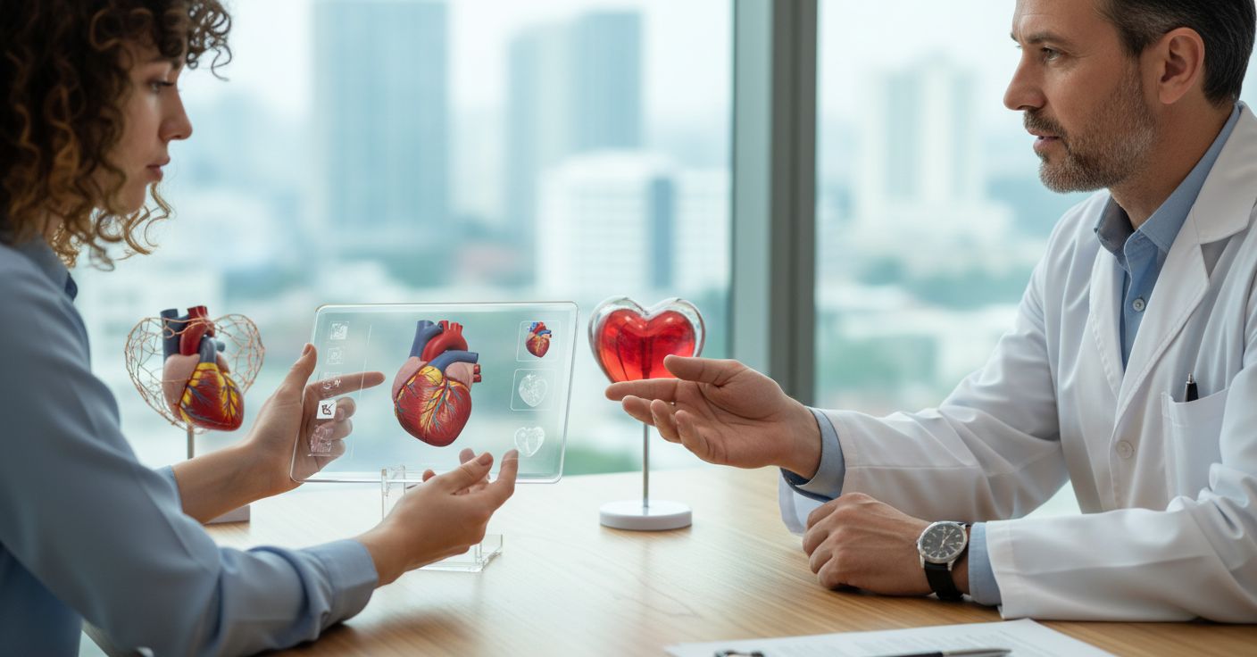 Кардиология — это раздел медицины, который изучает сердечно-сосудистую систему человека, выявляет пороки сердца и заболевания сосудов, изучает причину их возникновения, предлагает современные методы диагностики и лечения, а также разрабатывает профилактические действия для здоровья сердца и сосудов.