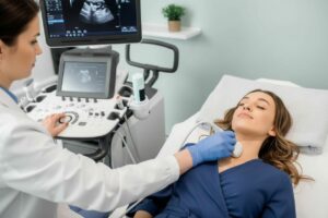 Чтобы установить диагноз, проводят аспирационную биопсию щитовидной железы. Во время процедуры тонкой медицинской иглой делают забор материала и отправляют на цитологию. Пункция щитовой железы проверяет узлы и определяет, вырабатываются ли гормоны. УЗИ щитовидки в Корее выявляет размер узлов, их изменения и исследует метастазы. Сканирование проверяет, как работает железа, а КТ и ПЭТ-КТ назначают при наличии метастаз в лимфоузлах, а также для изучения распространения метастаз в другие органы.